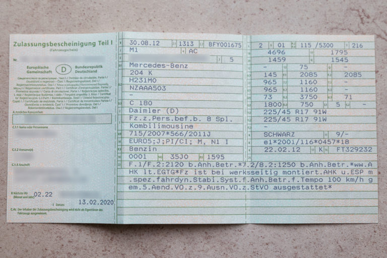 Fahrzeugschein bzw. Zulassungsbescheinigung Teil 1